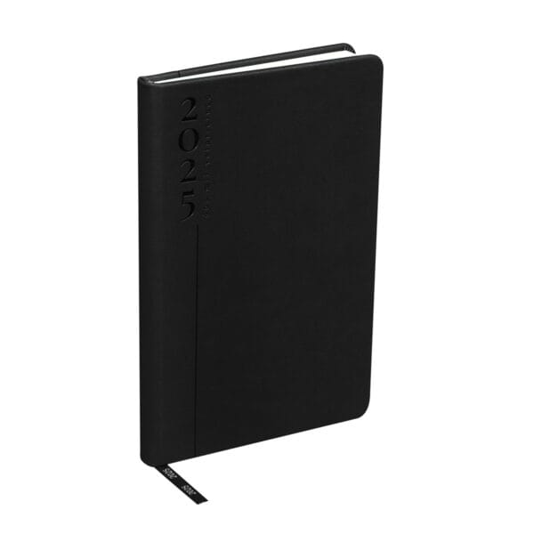 Agenda semanal con 80 hojas. Contiene datos personales, calendarios 2024-2025-2026, planeador 2025, presupuesto de gastos, seguimiento de nuevos hábitos, organizador de tareas, planeador de proyecto. Incluye caja individual.