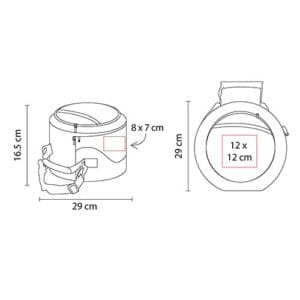 Asador portátil de carbón con hielera. Incluye parrilla con sujetador. Hielera sólo en la parte superior. Capacidad para 6 latas. Incluye asa y correa ajustable desprendible.