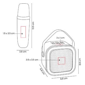 Área de Impresión: 3 X 1 cm Arriba / 3.5 x 3.5 cm Rejilla / 1.5 x 3.5 cm Micrófono