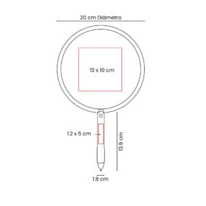 Área de Impresión: 1.2 x 5 cm (Bolígrafo) / 10 x 10 cm (Abanico)