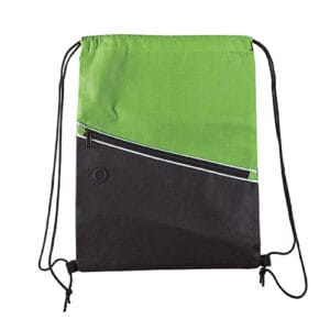 Bolsa-mochila con tirantes de cordón y cerrado de jareta. Incluye bolsa frontal con cierre y aditamento especial para audífonos.