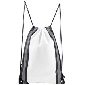 Bolsa-mochila con tirantes de cordón y cerrado de jareta. Incluye 2 tiras reflejantes al frente.