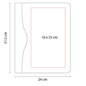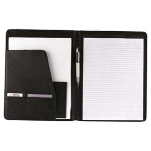 Incluye block de raya tamaño A4 con 20 hojas, compartimento para bolígrafo, documentos y tarjetas. No incluye bolígrafo.