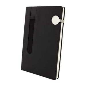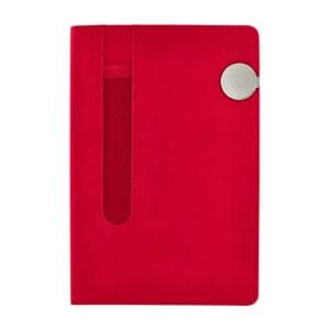 Libreta con 80 hojas de raya. Incluye compartimento para bolígrafo y broche circular metálico imantado. Bolígrafo no incluido.