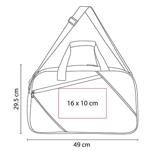 Bolsa principal con cierre, bolsa frontal y un compartimento lateral de red. Incluye asas y correa para hombro ajustable.