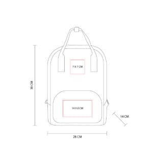 Área de Impresión: 7 x 7 cm Arriba / 14 x 8 cm Bolsillo