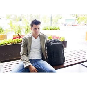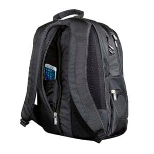 Bolsa principal con cierre y espacio para laptop de 15″. Bolsa central para tablet. Bolsa frontal con compartimentos para celular, bolígrafos y documentos. Bolsas laterales con cierre. Respaldo con cierre y porta celular interno. Respaldo y tirantes acojinados. Compartimento inferior con funda impermeable para la mochila. Incluye porta llaves.