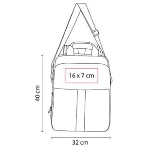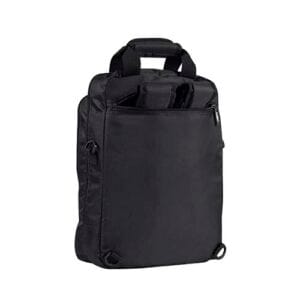 Mochila-portafolio. Bolsa principal con espacio para laptop de 15″ y organizador removible para cables, tablet, smartphone y tarjetas. 2 bolsas frontales, una con cierre en forro para facilitar bordado. Parte trasera con cierre para esconder tirantes removibles. Incluye asas y correa ajustable para hombro.