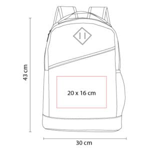 Bolsa principal con cierre y bolsa lateral de red. Bolsillo frontal. Compartimento para laptop de 16″. Tirantes ajustables y asa de agarre superior.