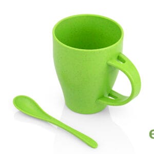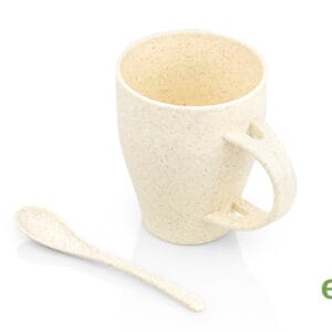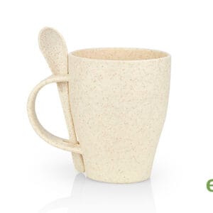 Mug en paja de trigo. Incluye cuchara. Capacidad 350ml / 12 Oz.