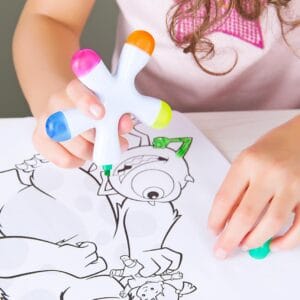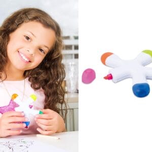 Resaltador con 5 colores de tinta: naranja, rosado, amarillo, verde, azul.
