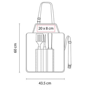 Material: Acero Inoxidable y Madera Caucho Utensilios / Poliéster Mandil