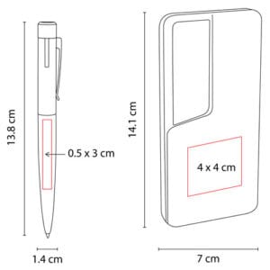 Área de Impresión: 4 x 4 cm Power Bank / 0.5 x 3 cm Bolígrafo