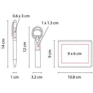 Incluye bolígrafo, llavero, cartera con organizador de tarjetas, credenciales, compartimento doble para billetes y caja de regalo.
