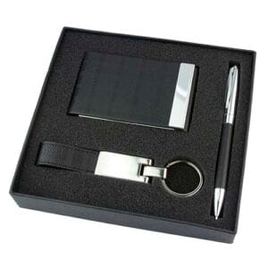 Tamaño: 2 x 12.7 cm Llavero / 1 x 13.4 cm Bolígrafo / 6.2 x 9.8 cm Tarjetero